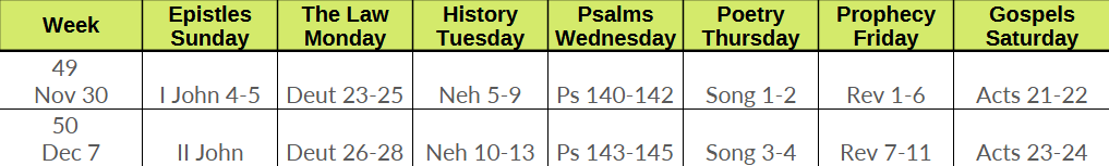 Now is a great time to start or continue the habit of reading your Bible on a daily basis. The link below will take you to the 3 plans Journey has chosen, if you don't already have a plan. Also included is instructions to use the S.O.A.P Bible reading method. Here is the scriptures to be read for the One Year Plan.