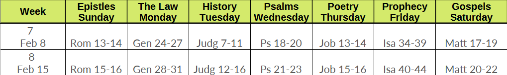 Now is a great time to start or continue the habit of reading your Bible on a daily basis. The link below will take you to the 3 plans Journey has chosen, if you don't already have a plan. Also included is instructions to use the S.O.A.P Bible reading method. Here is the scriptures to be read for the One Year Plan.