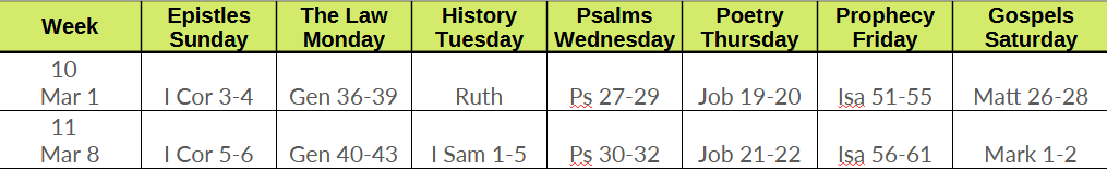 Now is a great time to start or continue the habit of reading your Bible on a daily basis. The link below will take you to the 3 plans Journey has chosen, if you don't already have a plan. Also included is instructions to use the S.O.A.P Bible reading method. Here is the scriptures to be read for the One Year Plan.