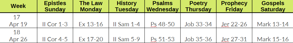 Now is a great time to start or continue the habit of reading your Bible on a daily basis. The link below will take you to the 3 plans Journey has chosen, if you don't already have a plan. Also included is instructions to use the S.O.A.P Bible reading method. Here is the scriptures to be read for the One Year Plan.