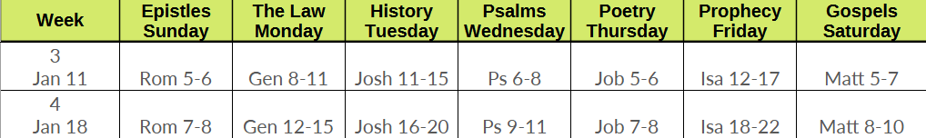 Now is a great time to start or continue the habit of reading your Bible on a daily basis. The link below will take you to the 3 plans Journey has chosen, if you don't already have a plan. Also included is instructions to use the S.O.A.P Bible reading method. Here is the scriptures to be read for the One Year Plan.